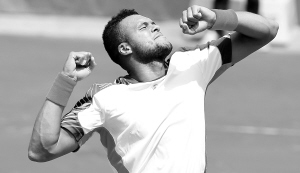 | 5月31日,在2012法国网球公开赛男单第二轮比赛中,法国选手特松加以3:1战胜德国选手史特比,晋级下一轮。图为特松加庆祝胜利。 新华社发 |