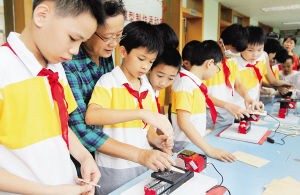 | ↑ 6月1日,孩子们在老师的指导下制作模型玩具。当日,省科学工作室面向社会免费开放,举办了“科技体验伴我快乐过六一”活动。 本报记者 苏晓杰 摄 |