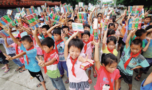 | ↑ 6月1日,南海网组织网友到定安县定城镇潭黎小学举行“六一”爱心游园活动。