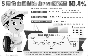 中国物流与采购联合会和国家统计局服务业调查中心1日发布的数据显示,5月份中国制造业采购经理指数PMI为50.4%,较上月回落2.9个百分点,结束了5个月的升势,显示经济增速的短期回落,但并不意味着进入新的衰退阶段。