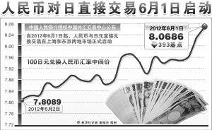 据悉,三菱东京UFJ银行等日本三大银行和中国银行、香港上海汇丰银行等将参与日元与人民币直接交易业务。参与交易的银行将分别决定东京和上海两地市场的日元对人民币汇率,并据此向企业等客户提供交易服务。