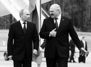 5月31日,在白俄罗斯首都明斯克机场,白俄罗斯总统卢卡申科(右)欢迎到访的俄罗斯总统普京。 当日,新任俄罗斯总统普京抵达白俄罗斯,开始为期2天的正式访问。这是普京上任以来的首次出访。 新华社/法新