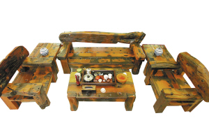 在老船木家具作坊中,一件又一件各具特色,又新奇大气的船木家具,有序地展现在赏家的眼前。有时尚芬芳的吧台,庄重大气的沙发套椅,功能实用的餐桌,或是方便耐用的马鞍椅;大至大堂吧台、广告指示牌,小到烟灰缸、工艺品,老船木家具都从不同角度展示了它独树一帜的魅力。