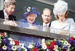 图为女王伊丽莎白二世(左二)和王室成员一同观看德比赛马比赛。 新华社发