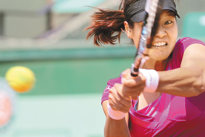 | 李娜在与舍夫多娃在比赛中回球。 新华社发 |