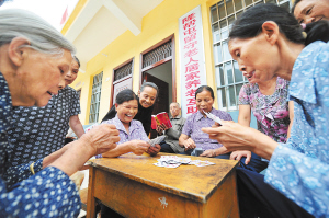 在广西都安瑶族自治县隆福乡隆福村隆帮屯“居家养老互助站”,老人们在一起打扑克。记者从广西民政部门获悉,广西计划在“十二五”期间投入8.3亿元用于农村养老服务体系建设,构建以居家养老为主、机构养老为补充的农村养老服务格局。新华社记者 黄孝邦 摄