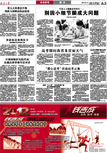 海南日报 本省新闻综合 003 2012-06-051 2012年06月05日 星期二