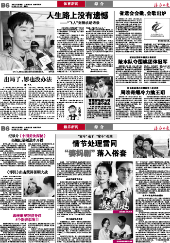 海南日报 体育新闻综合/娱乐新闻综合 014 2012-06-061 2012年06月06日 星期三