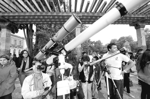 | ←人们在墨西哥城观测“金星凌日”天象。 |