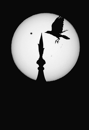 | → 6月6日,在印度北部的阿格拉市,一只飞鸟在“金星凌日”时从泰姬陵上空飞过,仿佛准备去衔取一粒落在太阳上的石子。 |