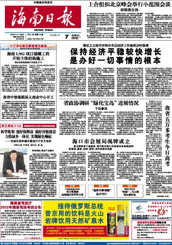 海南日报 头版 001 2012-06-071 2012年06月07日 星期四