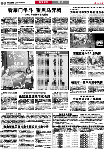 海南日报 体育新闻综合 014 2012-06-081 2012年06月08日 星期五