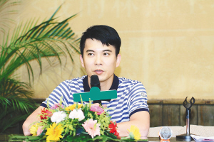 | 王子鸣在海口宣传他演的微电影。小戎 摄 |