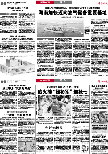海南日报 财经新闻/体育新闻 006 2012-06-091 2012年06月09日 星期六