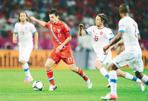 在欧洲债务危机的阴影中,2012年6月的欧洲用足球点燃热情。北京时间6月9日凌晨,2012年欧洲杯足球赛开战。在首日进行的A组两场比赛中,东道主之一波兰队1:1战平希腊队,俄罗斯队则以4:1大胜捷克队,7个进球宣告了足球盛宴的开始。