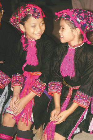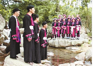 车子行驶在琼中黎族苗族自治县的群山之中,一会儿是山雨阵阵,一会儿是阳光明媚,随行的县文化馆的工作人员说,琼中生态环境好,一片云彩一片雨,这就是琼中。车子行到湾岭镇南毛村,就在村口,不等下车,几位身着民族服装的苗族妇女歌声已起,“门萨乖,门萨乖……”,悠扬的歌声飘在水田之边,飘在竹林之间,也缓缓地流进我们的心底。