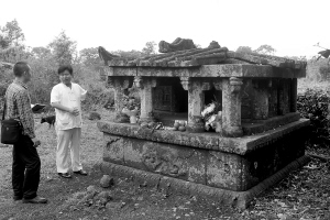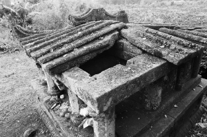 在澄迈县金江镇美榔村北面约600米处的一片红壤坡地中,几道火山岩和荆棘丛篱笆之间,有一座玄武岩材质的古墓,看上去不甚高大,还显得比较“玲珑”。坐落在这片被当地人称作“锦游山”的红土坡上,古墓一点都不显眼,墓石上斑驳的苔藓痕迹,愈发增添了它的沧桑感和厚重感。