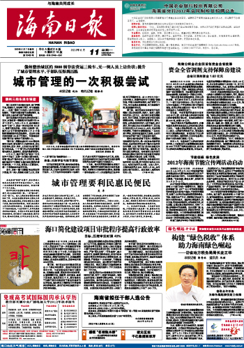 海南日报 头版 001 2012-06-111 2012年06月11日 星期一