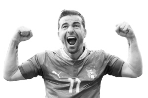 在巨星云集的意大利国家队,迪纳塔莱仿佛只是站在巨星后的配角。由于朱塞佩-罗西的重伤,34岁的迪纳塔莱才得以被普兰德利征召,成为卡萨诺与巴洛特利的替补。