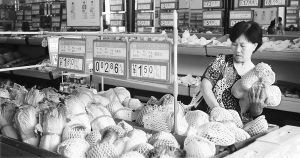| 6月11日,海口市坡博路虹冠小区4S平价菜店,市民在选购平价蔬菜。 本报记者 李英挺 摄 |