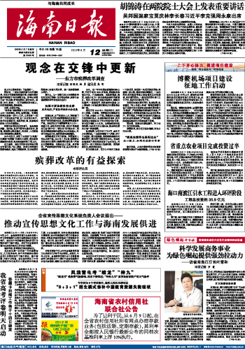 海南日报 头版 001 2012-06-121 2012年06月12日 星期二