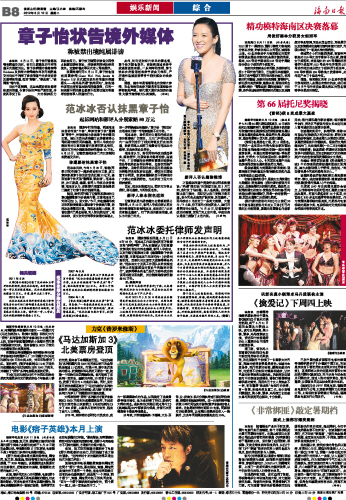 章子怡状告境外媒体