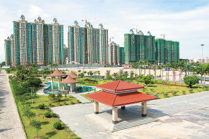 儋州市在推进国际旅游岛建设的进程中,把引进大项目作为主要抓手。2010年10月,该市成功将广东恒大集团引进开发房地产,经过短短一年多的努力,城北区旧貌换新颜。图为一幢幢具有欧陆风格的商品楼房,像雨后春笋般地耸立在那大城北新区。 吴文生 摄