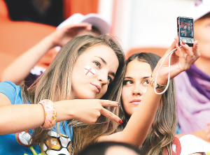 英格兰球迷在自拍。