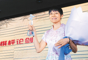 6月12日,由中国围棋协会、陕西省体育局主办的首届全国女子围棋国手赛在陕西西安落幕。最终,56岁的孔祥明八段捧得冠军奖杯。 新华社发