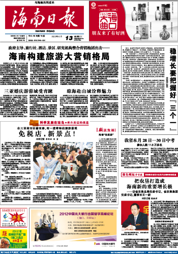 海南日报 头版 001 2012-06-131 2012年06月13日 星期三