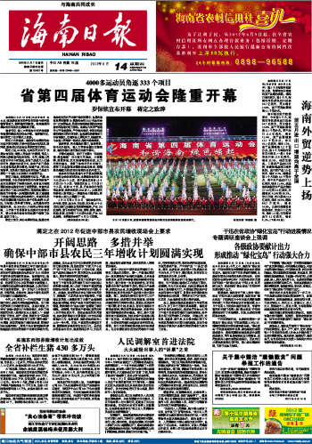 海南日报 头版 001 2012-06-141 2012年06月14日 星期四