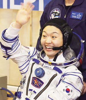 | 2008年4月8日,韩国的李素妍与俄罗斯宇航员一起乘坐俄“联盟TMA-12”号载人飞船从哈萨克斯坦的拜科努尔发射场升空,前往国际空间站。 |