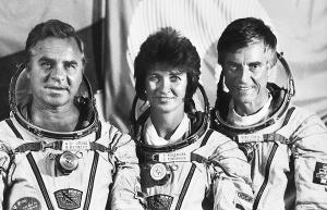 | 俄罗斯女宇航员叶·孔达科娃是世界上在宇宙中滞留时间最长的女宇航员。她于1994年10月4日乘“联盟-TM20”宇宙飞船和这两名宇航员一起到达和平号空间站,在太空飞行169天后于1995年3月22日返回地面。图为她与两名男宇航员合影。 |