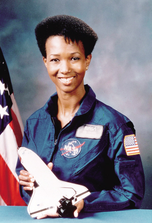 | 这是美国第一位黑人女宇航员梅·杰米森。她于1987年入选美国国家航空航天局进行太空飞行训练,1992年9月乘“奋进”号航天飞机完成了190多个小时的太空飞行。 |