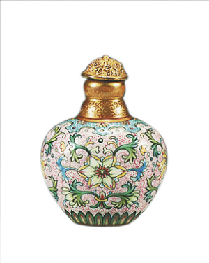 | 清代玻璃珐琅彩花卉鼻烟壶 |