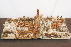 人顾振清一直以来都在关注并努力推介翁奋的艺术。他指出,《累卵计划》系列中,翁奋以脆弱蛋壳搭建沙盘,再现城市发展的一种缩微景观。他试图借助沙盘计划的语境提示观者关注当前全球、国家与个人三者之间的相互关系。所有蛋壳建筑的造型都来自翁奋针对不同城市记忆的分别抽样和重塑。蛋壳易碎、易被伤害的特性有着多重明喻、暗喻。这种“危如累卵”的物件及其寓言性表达,在消费主义和商业社会的氛围下,无疑警示着现代性疾速发展所隐含的各种隐忧。