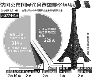 法国国民议会选举第二轮投票17日晚结束。初步计票结果显示,社会党独揽超过300个议席,足以控制国民议会、即议会下院。