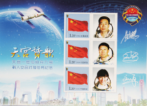 | 为纪念天宫一号与神舟九号载人交会对接任务,中国集邮总公司在神舟九号发射宣布成功的第一时间正式发行《天宫赞歌》纪念邮折一枚。 |