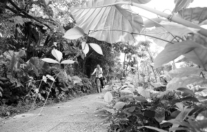 | 在定安县百里百村的绿色骑行道上,人们惬意骑行。 本报记者 张杰 摄