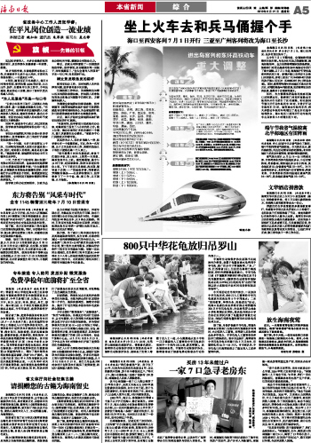 海南日报 本省新闻 005 2012-06-211 2012年06月21日 星期四