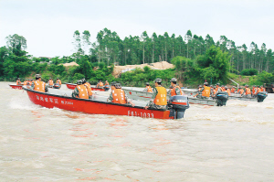 本报海口6月21日讯 (记者魏如松 通讯员周学文 赖丰泰)南渡江畔、旧州岭下,一条条操舟机战风斗浪。6月12日至21日,省军区组织各部队现役官兵和人武部专武干部共125名操舟机业务骨干在海口市进行抗洪抢险集训。 此次集训内容包括操舟机维护保养、操舟机故障判排、水上抢险作业等,旨在提高参训官兵操舟技术和救援水平,提升省军区部队抗洪抢险能力。 为突出实战特色,集训办特意将训练地点选在了南渡江水流最湍急的河段,并在水中模拟真实抗洪场景,设置了许多有针对性的障碍,给训练增加不少难度。在科目设置上,除了传统的离靠岸、直航、倒航、编队航行等基础技能的训练,还着重突出了操舟机故障的判排、水上救援、打捞漂浮物、复杂水域航行等重难点科目训练。针对抗洪抢险多发生在恶劣天气情况下,集训负责人有意识地加大在恶劣天气条件下的训练强度,让队员们在近似实战的环境下提高操作水平。 |