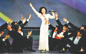 | 歌手王王君(左)、谢佳卿演唱《军民团结一家亲》。 |