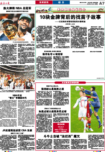 海南日报 体育新闻 综 合 007 2012-06-231 2012年06月23日 星期六