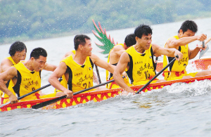 今天上午,海南定安2012年龙舟邀请赛在静美如诗的南丽湖举行。来自定安、文昌、澄迈、琼海、陵水、万宁等6市县的6支龙舟精英队伍参加了比赛,最终技高一筹的万宁代表队获得第一名并捧走3万元奖金。