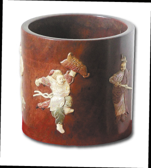 笔筒虽不知是否出自名家之手,但镶工精巧,人物细节栩栩如生,令笔筒很是“提神”。