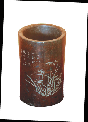| 清“杨州八怪”之一罗聘海黄笔筒 |