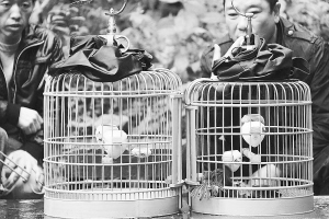 也正因为如此,陈生也结识了许多好友。之前互不相识的这些鸟友,因了养画眉这个共同爱好,能够在一起滔滔不绝的谈论鸟经,谈得兴起,就会把鸟友们拉到自己家中,一起赏鸟和斗鸟。而每次比赛之后,鸟友们便会开始换鸟和买鸟的过程。有些是大家相互交换,而成绩好的鸟便会开出高价,让鸟友们互相竞价。陈生说,选鸟主要有三大因素:一打“膘”,即体格壮;二打“骚”,即野性足斗劲强;三打”毛眼“,即看鸟的毛色,眼神。不过,选鸟有时候也看眼缘,陈生说,有时候一只鸟看上去并不怎么样,但就是一见就有种熟悉感。这只鸟他就一定会买回来。
