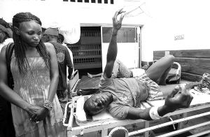 6月24日,在肯尼亚第二大城市蒙巴萨,手榴弹袭击事件中的伤者在医院等待治疗。 肯尼亚警方当日证实,蒙巴萨一家酒吧当晚发生一起手榴弹袭击事件,目前已造成至少1人死亡、7人重伤。 新华社/路透