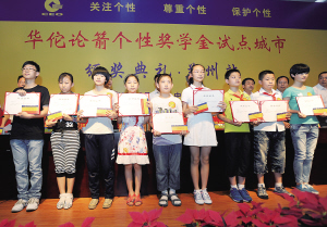 6月25日,甘肃省兰州市的100名中小学生拿到了一笔1万元的奖学金。这些学生获奖的理由并不是学习成绩好,而是因为他们非常“有个性”。 这项“个性奖学金”由一家名为太平洋建设集团的中国民营企业设立,兰州是这笔奖学金发放的第一站。随后,“个性奖学金”还将在安徽淮南、江西贵溪、贵州贵阳、河北石家庄四个城市陆续发放。 新华社记者 聂建江 摄