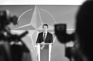 | 6月26日,在比利时首都布鲁塞尔的北约总部,北约秘书长拉斯穆森出席新闻发布会。